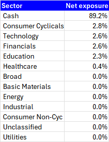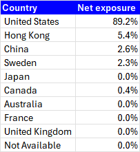 - USD cash holdings dominate the exposures, but there is some China and HK-related exposure.