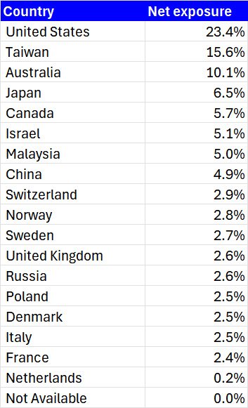 - I am pleased to see the portfolio well-diversified across multiple geographies. I don't particularly aim for this outcome; it is a consequence of what I find most compelling in my 9,000+ ticker global equities universe.