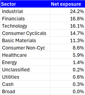 The overall sectoral exposure majorly represents the particular slice of the broader Japanese market I have bought into.