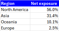- The portfolio has most of its exposure to North America via USD cash holdings