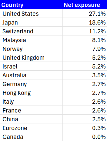 - I am pleased to see the portfolio well-diversified across multiple geographies. I don't particularly aim for this outcome; it is a consequence of what I find most compelling in my 9,000+ ticker global equities universe.