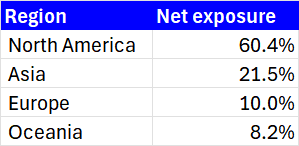 - The portfolio has true global equity exposure, with most of it in North America.