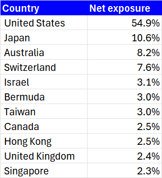 - Almost half of the exposure comes from a very diversified set of countries.