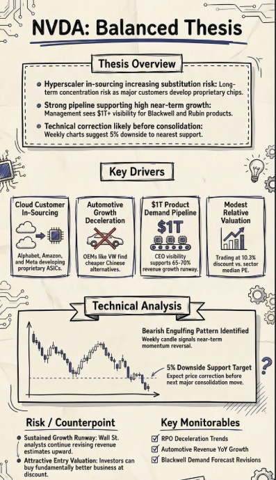 - Nvidia’s largest cloud customers are accelerating in-house chip efforts, increasing long-term substitution risk despite today’s exceptional AI demand visibility.
