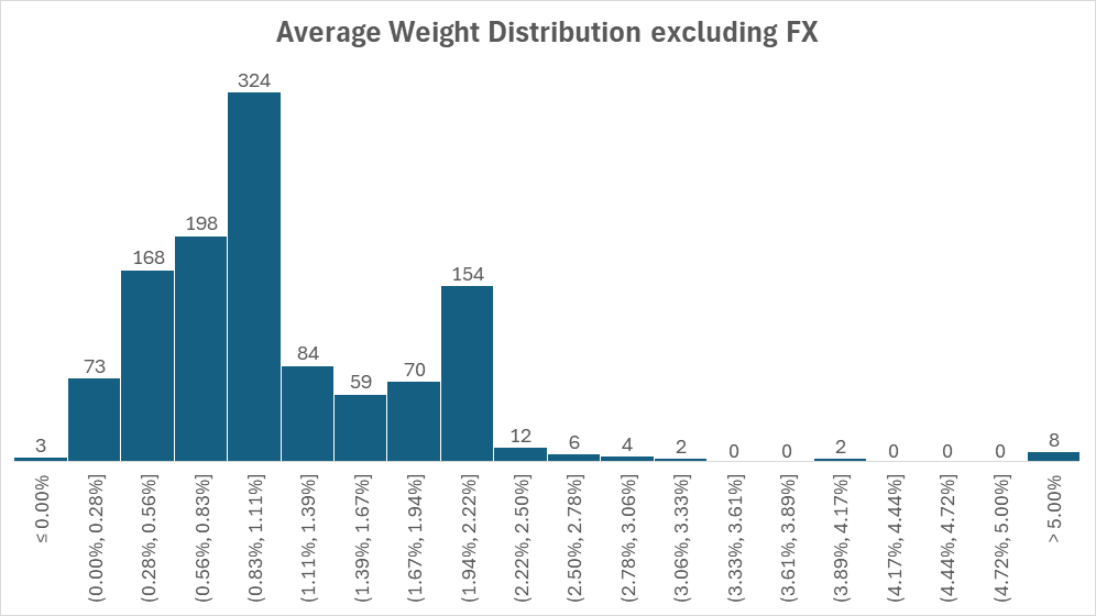 - Aggregate returns profile is made up of many contributions of small positions rather than a reliance on a few concentrated winners.
